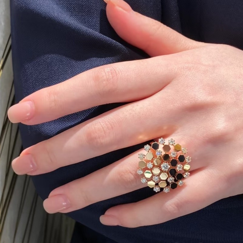【S925銀】蜂巢煙花滿天星帶鑽戒指