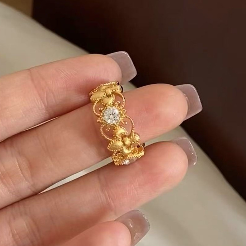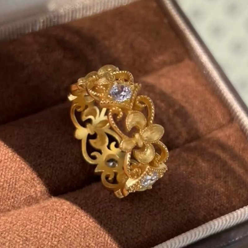【S925銀】意大利中古拉絲鳶尾花高碳鑽戒指