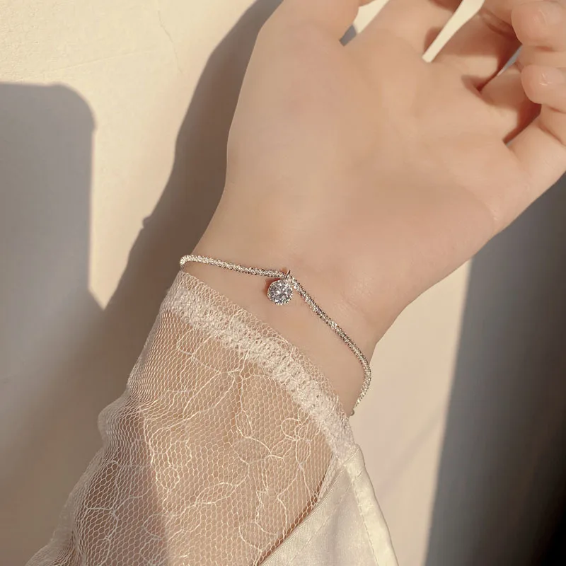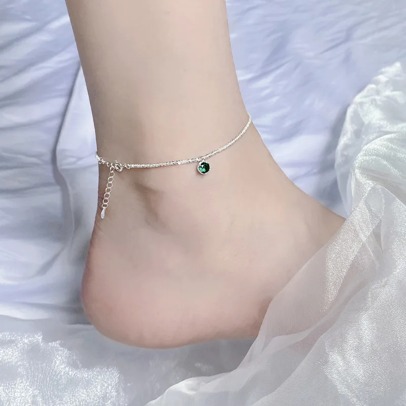 【S925銀】綠白粉三色鋯石波光粼粼純銀頸鏈/手鏈/腳鏈 數量
