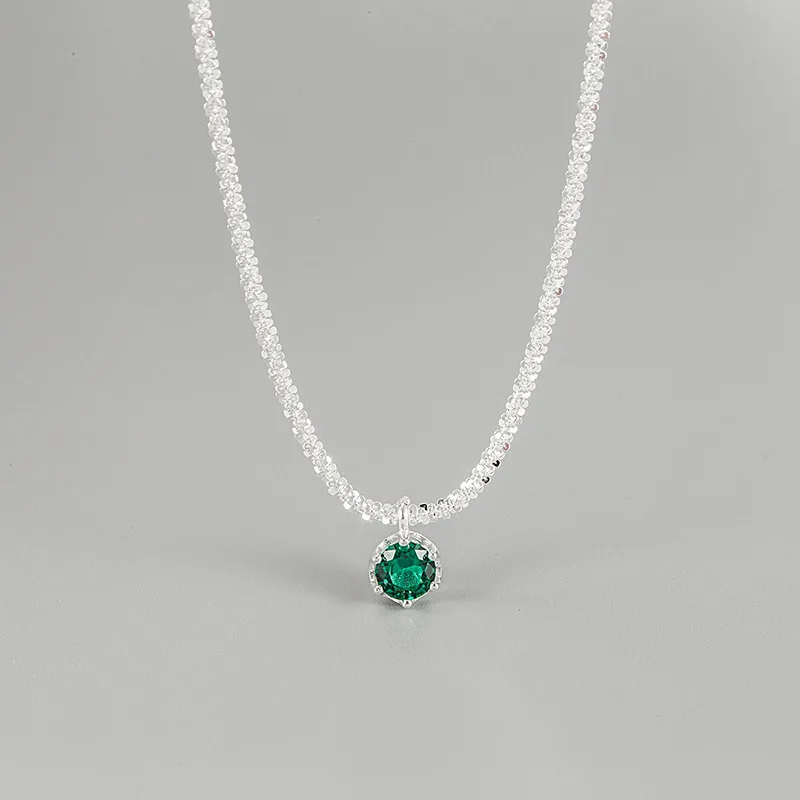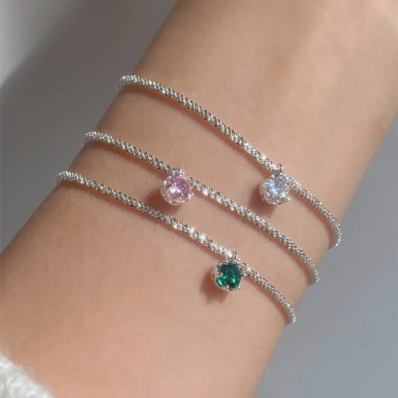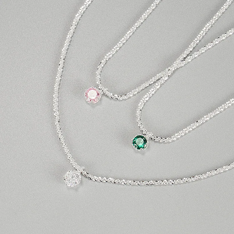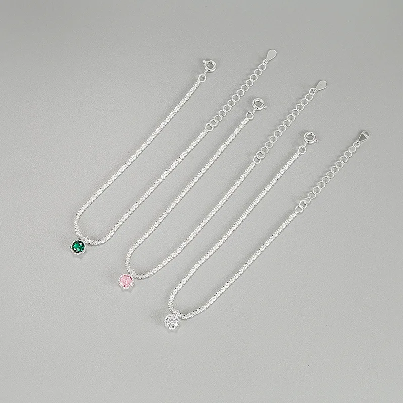 【S925銀】綠白粉三色鋯石波光粼粼純銀頸鏈/手鏈/腳鏈