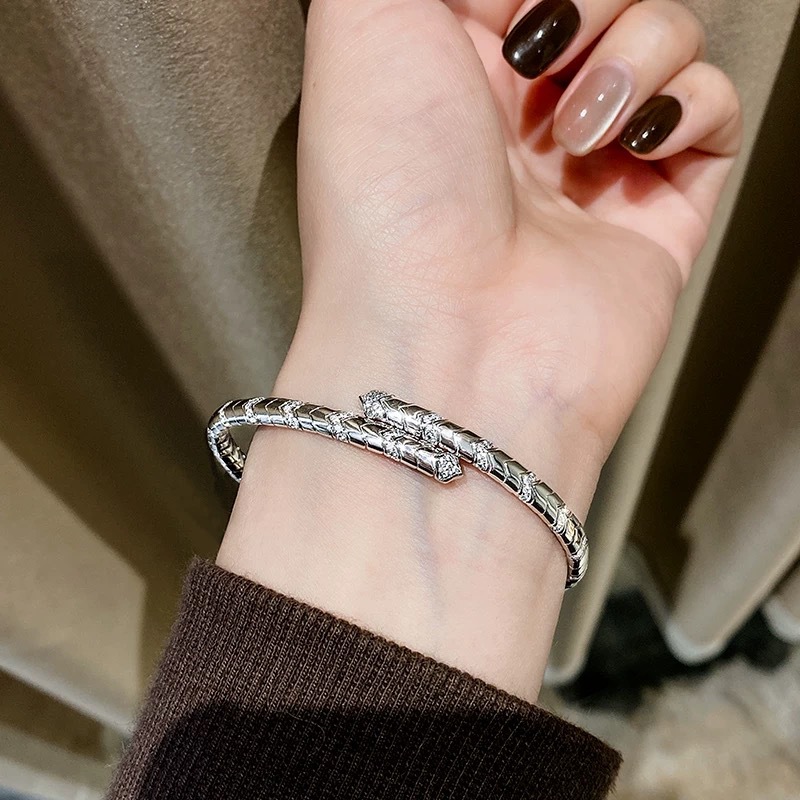 【S925銀】復古靈蛇蛇骨素圈彈簧手鐲