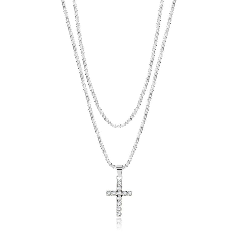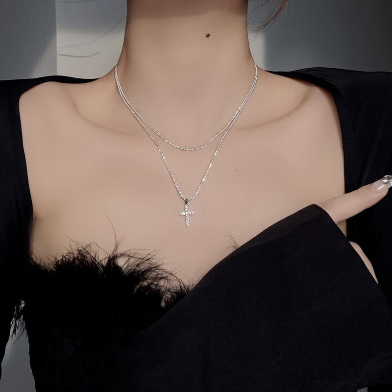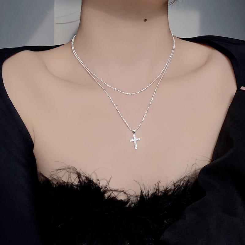 【S925銀】雙層套鏈十字架波光粼粼項鏈