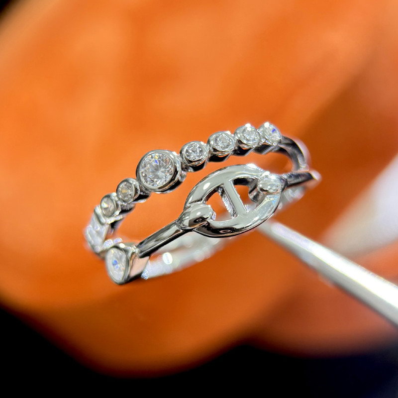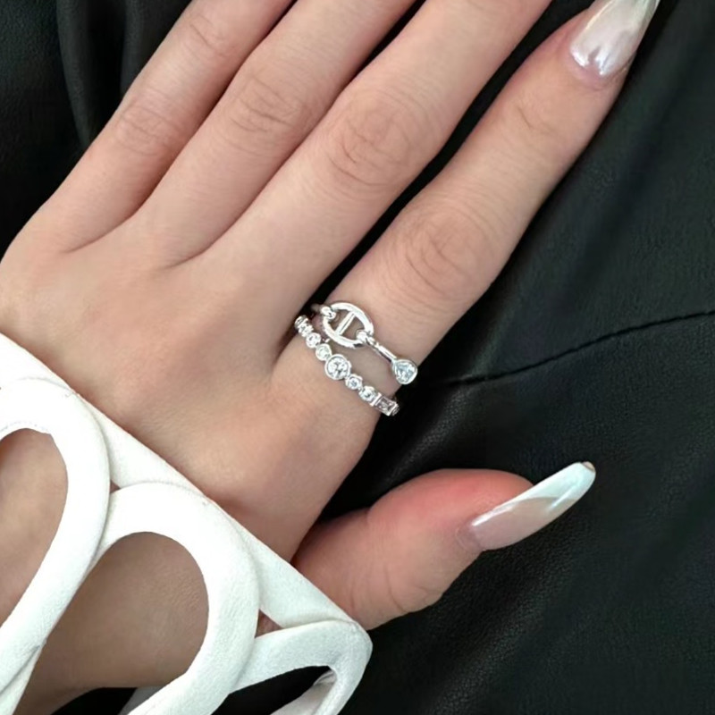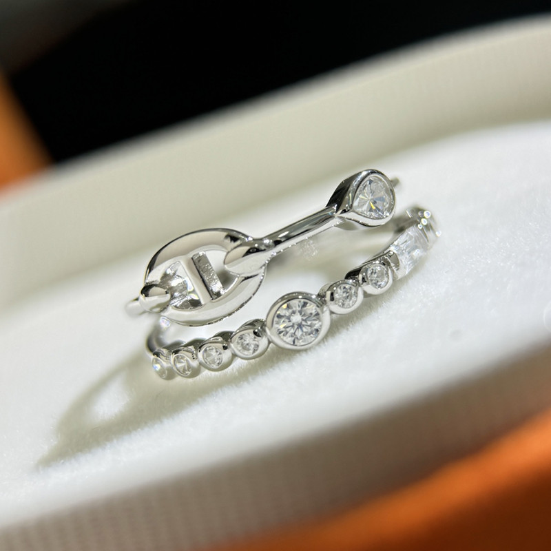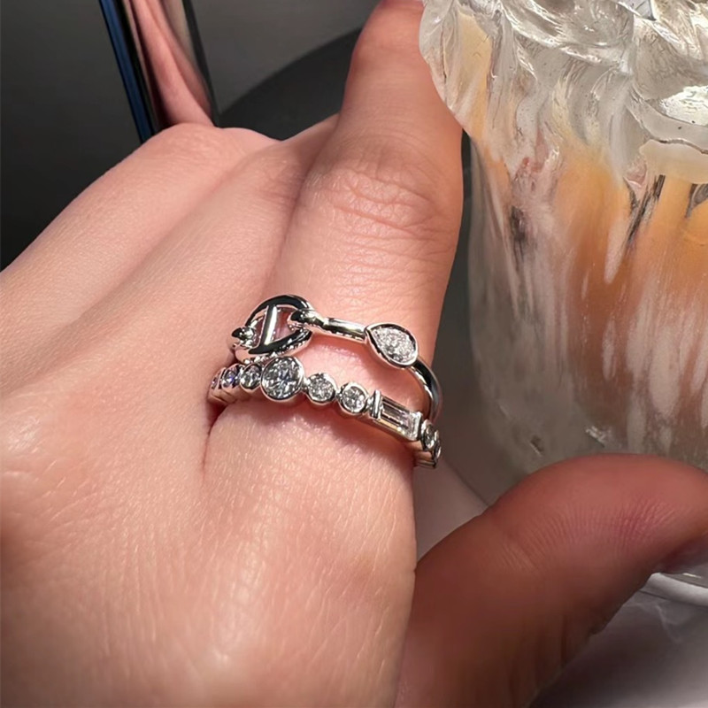 【S925銀】雙層豬鼻排鑽戒指