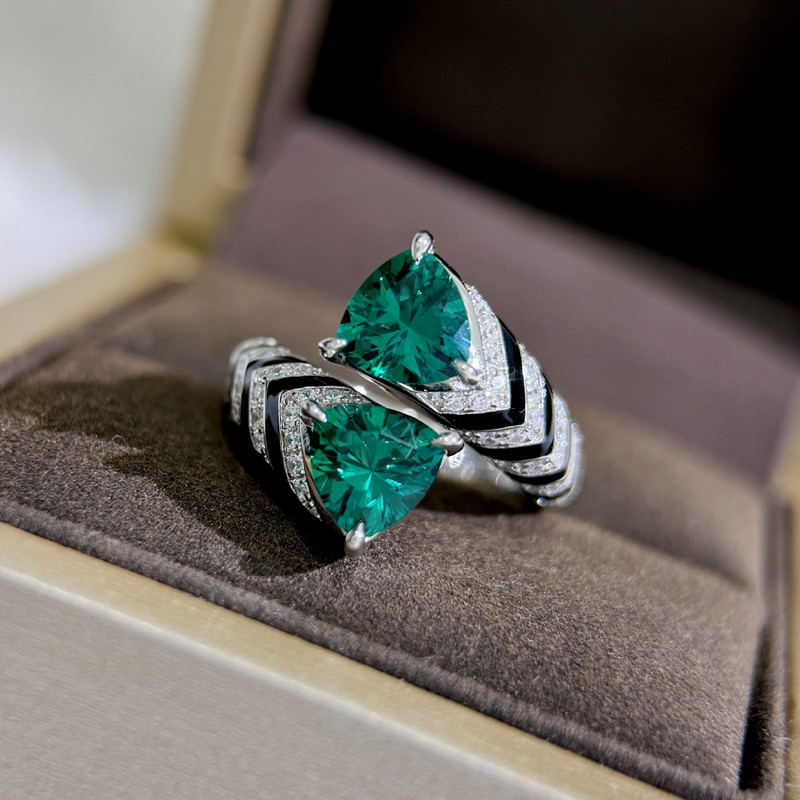 【S925銀】中古老錢風三爪培育祖母綠豹紋開口戒指